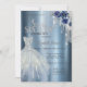 Elégante robe bleue, fleurs bleu aquarelle et parties scintillant argent goutte sur un arrière - plan métallique bleu.