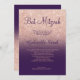 Une parties scintillant d'or rose faux, moderne, original et simple ombre invitation Bat mitzvah sur une couleur de raisin violet entièrement personnalisable arrière - plan