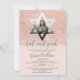 Etoile de David masque photo, parties scintillant d'or Rose pastel rose pastel script calligraphie typographie Bat mitzvah invitation de fête.Parfait pour une soirée moderne élégante. Ajoutez votre nom hébreu.