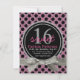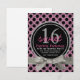 Invitations amis et famille à une fête spéciale de 16 ans pour une fille avec cette invitation funky rose et noire motif polkadot! Faux style parties scintillant arrière - plan noir rose et solide, avec un joli ruban et un arc de style glitterie argenté, et cercle double avec un texte gris et rose assorti annonçant un doux 16. Quatre zones de texte personnalisables pour vos informations de groupe. Plusieurs autres produits de coordination disponibles dans le magasin pour une fête d'anniversaire thématique. Également disponible dans d'autres couleurs et motifs.