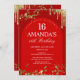 Cette invitation branchée d'anniversaire rouge et or présente des gouttes de faux parties scintillant et un design élégant qui fera briller votre fête. La combinaison du rouge et de l'or ajoute une touche de glamour et de feu, ce qui le rend parfait pour toute célébration d'anniversaire. Le design est attrayant et moderne, et les gouttes de faux parties scintillant lui donnent une touche amusante et ludique. Envoyez ces invitations et préparez-vous à fêter avec style. Ce design est parfait pour tous les anniversaires, mais surtout populaire pour une fête d'anniversaire de femme !