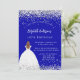 Une invitation moderne, élégante et glamour pour une fête d'anniversaire du 18ème (ou tout âge). Un arrière - plan bleu royal avec de la fausse poussière de parties scintillant, une fille portant une robe de bal. Le nom est écrit avec un script de style moderne écrit à la main. Personnalisez et ajoutez les détails de votre fête.