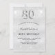 Une invitation moderne, élégante et glamour pour une fête de 80e anniversaire. Un arrière - plan faux argenté, décoré de poussière de parties scintillant. Personnalisez et ajoutez votre nom et les détails de votre fête. Le numéro 80 est écrit avec une police de style ballon, script.