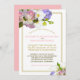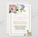 Cette belle faire-part de mariage fleurie présente du texte or et rose sur un arrière - plan blanc avec une bordure carré décalée or et un beau bouquet pastel printanier de fleurs comprenant roses roses, lys et orchidées calles blancs, et hydrangée violet ou lavande clair. Le texte est entièrement personnalisable.