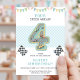 Delightful pastel racetrack number four with colorful cars, checkered flags, and watercolor bunting. A soft, playful design perfect for a boy’s fourth birthday party.