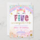 Invitation Pastel Rainbow Magical Unicorn 5th Birthday