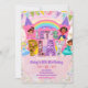 Pastel Rainbow Glitter Bounce Castle Princess Costume Birthday Invitation, Let's Play Girl Birthday Invite, Sequin Kids Birthday