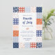 Célébrez la fête de l'indépendance avec ces invitations uniques en patchwork rouge, blanc et bleu. Personnalisez avec votre propre libellé et donnez le ton pour une soirée 4 juillet amusante, suivi de la suite de 4 juillet Patchwork !