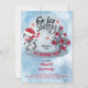 Pingouin mignon en patins à glace autour de l'étang de patinage avec un poinsettia rouge orné d'un arbre de Noël et la neige tombant tout autour. Le design est en rouge, gris, bleu ciel et noir avec des touches de blanc. Personnalisez simplement avec les détails de la fête d'anniversaire. L'arrière comporte un motif de chute de neige sur un arrière - plan rouge. Composite par Holiday Hearts Designs.