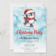 Invitation Patineur de glace Pingouin mignon Bleu Rouge Festi