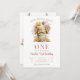 Invite family and friends to a day of hopping fun with our "Somebunny is Turning One" birthday invitation! This charming design features a sweet watercolor baby bunny holding a glass jar filled with vibrant wildflowers, set against a classic peach and white gingham check border.