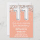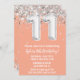 Invitation Peach Silver 11th Birthday Party