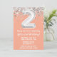 Peach and silver 2th anniversaire invitation de fête age 2 anniversaire invitation de fête avec parties scintillant et écriture de script moderne et ballon amusant.