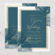 Invitation Peacock Blue Gold Alcohol ENK Chic Wedding Invitat