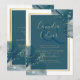 Invitation Peacock Blue Gold Alcohol ENK Chic Wedding Invitat