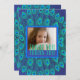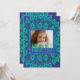 Personnalisable Carte de remerciements d'anniversaire ! Ce magnifique design inspiré de plumes de paon est offert en couleurs vives - bleu et aqua. Entre les magnifiques plumes de queue d'oiseau paon est une zone encadrée pour un contenu personnalisable. Sur le devant il y a une photo et un texte, à l'arrière il y a de l'espace pour un message personnel de remerciement et d'appréciation.