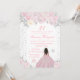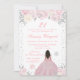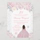 Cette élégante et glamour invitation d'anniversaire d'hiver présente une belle princesse aux cheveux bruns et à la peau foncée dans une robe de bal rose. Le texte combine écriture manuscrite et polices sans serif modernes pour un look élégant et sophistiqué. Les compositions florales, les flocons de neige et les confettis argentés créent un mélange parfait de rustique et de chic. Graphiques par www.etsy.com/uk/shop/SunflowerDayLove
