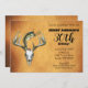 Rustic western Fishing and Hunting Theme Birthday Invitation Card. Entrez vos coordonnées et c'est prêt ! Grosse bouche Bass Saupoudrer pour attraper un leurre de pêche vintage Hula Popper au-dessus d'un grand crâne de cerf de sapin. Parfait pour le pêcheur de chasse ou la femme de pêche dans votre vie. *Cherchez les produits correspondants dans les collections de mon magasin.