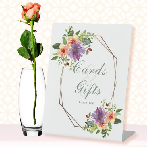 Cette faire-part de mariage à l'aquarelle violet pêche et poussiéreuse est si sophistiquée. Ces couleurs sont en tête de tendance cette saison des nuptiales. L'octogone or ajoute un accent élégant