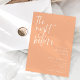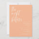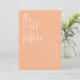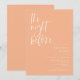 Dîner de répétition minimaliste mariage avec une police de caractères de script moderne qui dit "la veille". La couleur arrière - plan est la pêche.