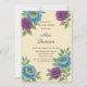 Un design faire-part de mariage étonnant qui présente d'élégantes pivoines bleu Lyons associées à des roses violets Fig et à une végétation douce. La palette de couleurs audacieuse et romantique rend ce design idéal pour les couples à la recherche d'un thème floral unique et intemporel. Parfait pour les mariages.