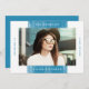 Invités Invitations à votre fête de remise de diplômes en style avec notre invitation de la fête de remise de diplômes de photographie peinte. Les invitations modernes de la fête de remise de diplômes ont une brosse bleue audacieuse au milieu. Personnalisez le devant en ajoutant votre photo principale préférée, le nom du diplômé, l'école et l'année de diplôme. L'arrière dispose d'espace pour une deuxième photo avec les détails de votre fête en blanc contre un arrière - plan bleu.