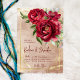 Burgundy peonies floral faire-part de mariage de script moderne avec code QR RSVP détails à l'arrière.