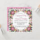 Une invitation de mariage sophistiquée présente une frontière florale de style Rococo somptueuse, encadrant un espace central pour un message personnalisé et évoquant un sentiment de grandeur vintage. La bordure est minutieusement détaillée avec des roses roses rousses, des nénuphars crèmes et des rouleaux dorés tourbillonnants, accentués de détails brillants de feuilles d'or et de fines gouttelettes de perles, le tout dressé contre un blanc immaculé et texturé, complétant l'esthétique générale tout en offrant un espace intérieur spacieux pour un message sincère et créer un saké intemporel.
