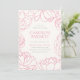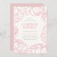 Parfaites pour les douches nuptiales de jardin d'été ou de printemps, ces élégantes invitations nuptiales de pivoine fleurie présentent une bordure de fleurs de pivoine rose illustrations, avec vos détails de l'événement en lettrage classique. Personnalisez ces invitations classiques à la douche nuptiale avec le nom de la mariée, la date et l'heure de la douche, le lieu et l'adresse, le RSVP et les informations d'enregistrement.