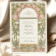 Set the tone for “the night before” with an elegant two-sided rehearsal dinner invitation inspired by classic Art Nouveau design. An ornate arched frame is filled with flowing botanical linework, all rendered in fine ink-style detail with soft watercolor shading. Creating a timeless look reminiscent of vintage poster art, decorative tilework, and turn-of-the-century illustration.