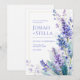 Capture the delicate charm of spring with this hand-painted watercolor design featuring vibrant muscari—also known as grape hyacinth—and ethereal wildflowers. The arrangement showcases a palette of periwinkle blue, soft lavender, and deep violet, complemented by sage and teal-toned leaves with subtle gold line detailing. A minimalist gold rectangular frame provides a touch of modern luxury, while the clean white background ensures your event details remain clear and elegant. The soft, bleeding watercolor textures create a romantic, airy vibe perfect for a high-end celebration. This botanical layout is an exquisite choice for a spring meadow wedding or a fairytale garden ceremony. The unique periwinkle and gold color story makes it particularly suitable for a sophisticated bridal shower, an intimate outdoor engagement party, or a whimsical brunch reception. It beautifully complements wedding palettes featuring dusty blue, lavender, gold leaf, or cool-toned greens. It is a versatile choice for couples seeking a fine-art botanical or classic romantic aesthetic.