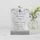 Le dessus de la carte est décoré d'un élégant motif en argent, blanc et gris foncé créant des lignes complexes avec un coeur au centre. Au verso de la carte, vous pouvez ajouter un message lié aux directions, au code vestimentaire, etc.