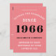 For those born in 1966 and celebrating their birthday party we have the ideal birthday invitation card. The pink background with a white and black design is simple and yet elegant. Easily customize the text to the front and the rear of this birthday invitation card using the template provided. Part of the setting standards range of cards, party supplies and gifts.
