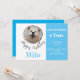 Chien Pawty ! Organisez votre anniversaire de chiot ou de chien avec cette carte d'invitation personnalisée pour animaux de compagnie. Ajoutez la photo préférée de votre chien et personnalisez avec le nom, l'âge de l'anniversaire, et toutes les infos de fête d'anniversaire! DROIT D'AUTEUR © 2023 Pauwels Design, Chien Art - Tous droits réservés. Personnalisé Animal Photo Chien Chien Chien bleu Anniversaire Invitation