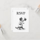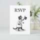 Une carte de réponse RSVP personnalisée avec un stylo noir et blanc vintage et un dessin à l'encre d'un chat portant des lunettes et un topcoat faisant basculer son chapeau supérieur. Customisez-le pour changer les polices, les couleurs arrière - plans et même enregistrer votre design pour plus tard!