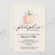 Un petit citrouille mignon attaché avec un ruban bleu met en évidence ces invitations en ivoire mou baby shower garçon avec "Un petit citrouille est en route" sur l'avant et registre, tombole de couches et livres pour les informations bébé sur le dos - ajouter, supprimer ou facilement changer l'information sur le dos. (Disponible aussi en rose et ivoire.) CORRESPONDANCE d'objets dans notre collection.
