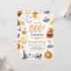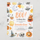 Célébrez l'Halloween avec notre Petite Boo Scary Halloween Baby shower Invitation! Doté d'un crâne éffrayant, d'un citrouille d'Halloween orange et d'une chauve-souris ludique, ce design saisit parfaitement le charme étrange de la saison. Le casquette sorcier, le ballon orange et la lune ajoutent à l'ambiance festive, tandis que les nuages oranges créent un arrière - plan d'une beauté obsédante. BBS777