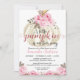 Un petit citrouille est en route pour fêter cette invitation au baby shower fleuri d'automne. Cette carte présente le mot citrouille en parties scintillant faux rose et arrangements floraux roses. La citrouille blanche est accentuée par le rose floral de la carte.