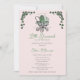 Cette mignonne invitation au baby shower féminin rose "Lucky Little Shamrock" présente un chic chariot de bébé victorien irlandais dessiné à la main, orné de tons verts et entouré de shamrocks chanceux verts, le tout contre un arrière - plan rose pâle et doux. Le dos est orné d'une adorable motif de Jacquard vert et rose assortie. Idéal pour les baby showers de mars, accueillant une petite fille irlandaise ou une fête autour de la Saint Patrick !