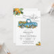 Célébrez l'arrivée d'un petit amour avec cette charmante invitation à une baby shower mettant en vedette un vieux pick-up bleu rempli d'oranges et de verdure. Le thème joyeux et citronné ajoute une touche ludique, parfait pour les célébrations estivales ou les rassemblements rustiques. Personnalisez avec les détails de votre événement pour créer un souvenir unique que les invités adoreront. Conçue pour les futurs parents, cette invitation allie un style fantaisiste à une élégance moderne, ce qui la rend idéale pour les baby showers avec un thème doux et vibrant.