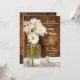 Invitez vos invités à poursuivre la célébration le matin après la cérémonie de mariage avec l'élégante et informelle invitation de brunch après mariage à thème rustique chic Mason Jar et marguerites blanches. Cette charmante invitation pour un petit déjeuner ou déjeuner après mariage, à thème ranch rustique chic, présente une photographie florale numérique d'un pot en verre rempli de fleurs de marguerites blanches et un fond en bois de grange brun patiné. Une parfaite source d'inspiration pour votre célébration de style fermier décontracté ou votre fête dans une grange.