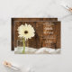 Invitez vos invités à célébrer les jeunes mariés le matin après leur cérémonie de mariage avec la charmante invitation pour le brunch d'après-mariage dans un pot Mason et avec des marguerites blanches Barn. Cette invitation informelle mais élégante pour un petit-déjeuner ou un déjeuner d'après-mariage sur le thème rustique présente une photographie florale numérique charmante d'un pot en verre rempli d'une seule fleur de gerbera blanche et un fond en bois de grange brun patiné. Une source d'inspiration parfaite pour votre célébration décontractée de fête de grange.