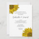 Célébrez les jeunes mariés le matin après leur cérémonie de mariage avec la jolie invitation de Petit Déjeuner de Mariage Post-Nuptial sous le Soleil Jaune. Cette invitation personnalisée simple mais élégante avec des fleurs estivales ou automnales pour le petit déjeuner ou le déjeuner après le mariage présente des tournesols jaunes ornant les coins sur fond blanc. Une inspiration parfaite pour votre réception de mariage et votre célébration en plein air en été.
