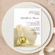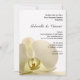 Invitez vos invités à poursuivre la fête le matin après la cérémonie de mariage avec l'élégante invitation Petit déjeuner de mariage sur fond blanc avec fleur d'orchidée. Cette jolie invitation personnalisée pour le petit déjeuner ou le déjeuner après le mariage présente une photographie florale en gros plan d'une fleur d'orchidée phalaenopsis blanche sur un fond blanc éclatant.