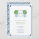 Ce design intelligent bleu, blanc et vert présente un monogramme de couple avec une boule de buis en pot en forme de jarre gingembre de chaque côté. Il est entouré d'une bordure "clé grecque" et au verso, il y a un dosseret à motif "clé grecque". J'ai configuré le modèle pour un brunch de jeunes mariés, mais tous les champs de texte sont personnalisables selon vos besoins. Au verso, vous pouvez changer la couleur de contraste (ici en bleu foncé) par la couleur de votre choix en accédant à l'outil de conception (sous la zone de personnalisation du texte, cliquez sur "personnaliser davantage"), puis en changeant la couleur de fond au verso.