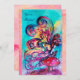 Invitation PETIT ELFÉ DE CHAMPIGNONS, rose jaune bleu scintil