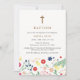 Célébrez le baptême avec cette mignonne invitation au baptême au printemps! Doté d'un charmant design vintage de motif fleur sauvage, il présente des fleurs sauvages colorés et des croix classiques, lumineux et délicats.