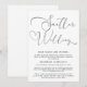 En raison des directives de distanciation sociale, le nombre d'invités au mariage pourrait devoir être réduit. Faites savoir à votre famille et à vos amis la mise à jour du mariage avec ces invitations à l'annonce élégantes et simples ''petit mariage''. Les caractéristiques de conception comprennent un script calligraphique ''petit mariage'' sur fond blanc et des détails en lettrage tendance. Tout le texte est modifiable.