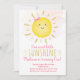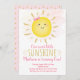 Cette mignonne invitation à l'anniversaire est accompagnée d'un doux soleil avec un arrière - plan d'aquarelle rose et de faux feuillards dorés.