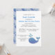 Petite baleine mignonne / petite écorce bleu et blanc invitation baby shower couple. Le fond de l'invitation est recouvert de petites baleines bleues.